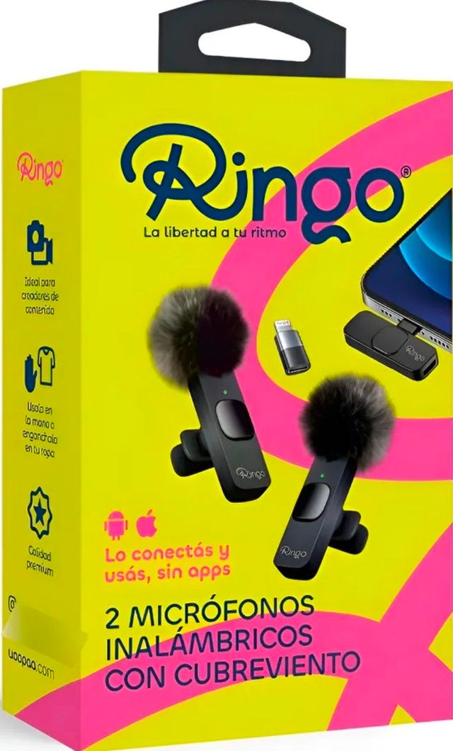 Un micrófono Ringo para celulares es un dispositivo de audio inalámbrico, diseñado para grabar sonido de alta calidad de forma sencilla. Es ideal para creadores de contenido, ya que se conecta fácilmente a smartphones (con adaptadores para Android y iOS) y minimiza el ruido ambiente para una voz nítida. Existen versiones de un solo micrófono y de doble micrófono para grabar a dos personas simultáneamente.