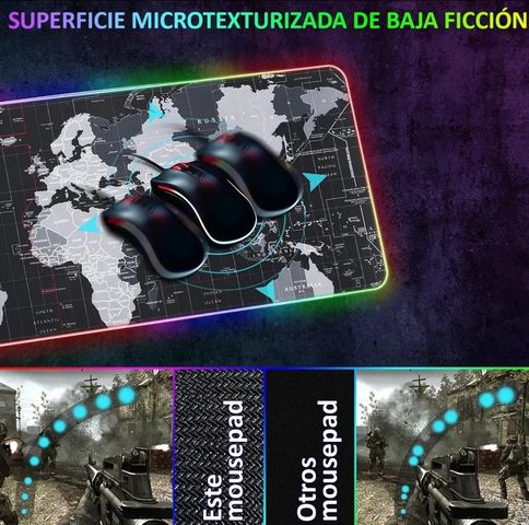 • Diseño: Mapa táctico monocromático con detalles en rojo • Luces RGB: 12 modos ajustables • Material: Tela de alta calidad y base de goma antideslizante