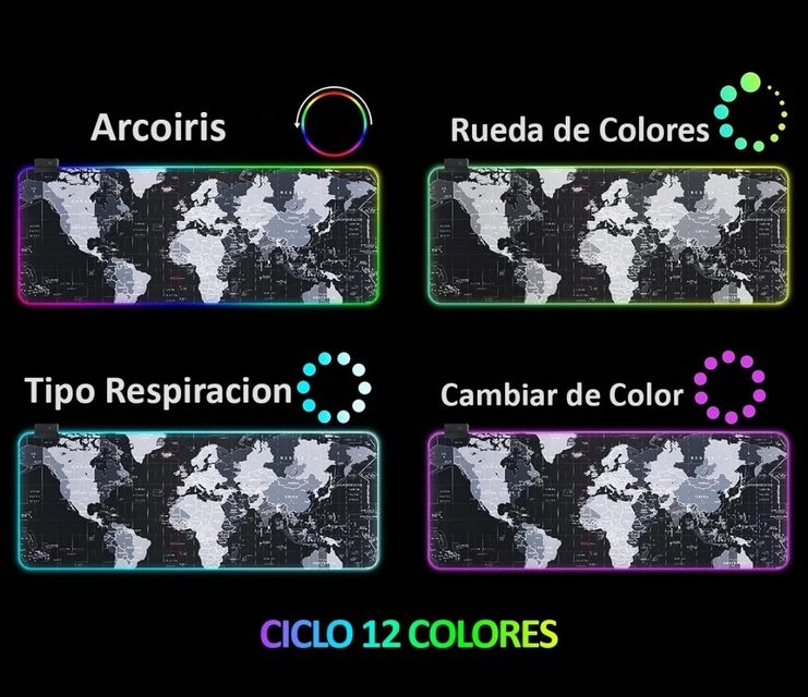 • Características: Resistente al agua, bordes RGB iluminados, superficie de precisión Dale vida a tu escritorio con un diseño lleno de estrategia y un toque de iluminación impresionante. ;Llevate este mousepad yl brillá en cada batalla!