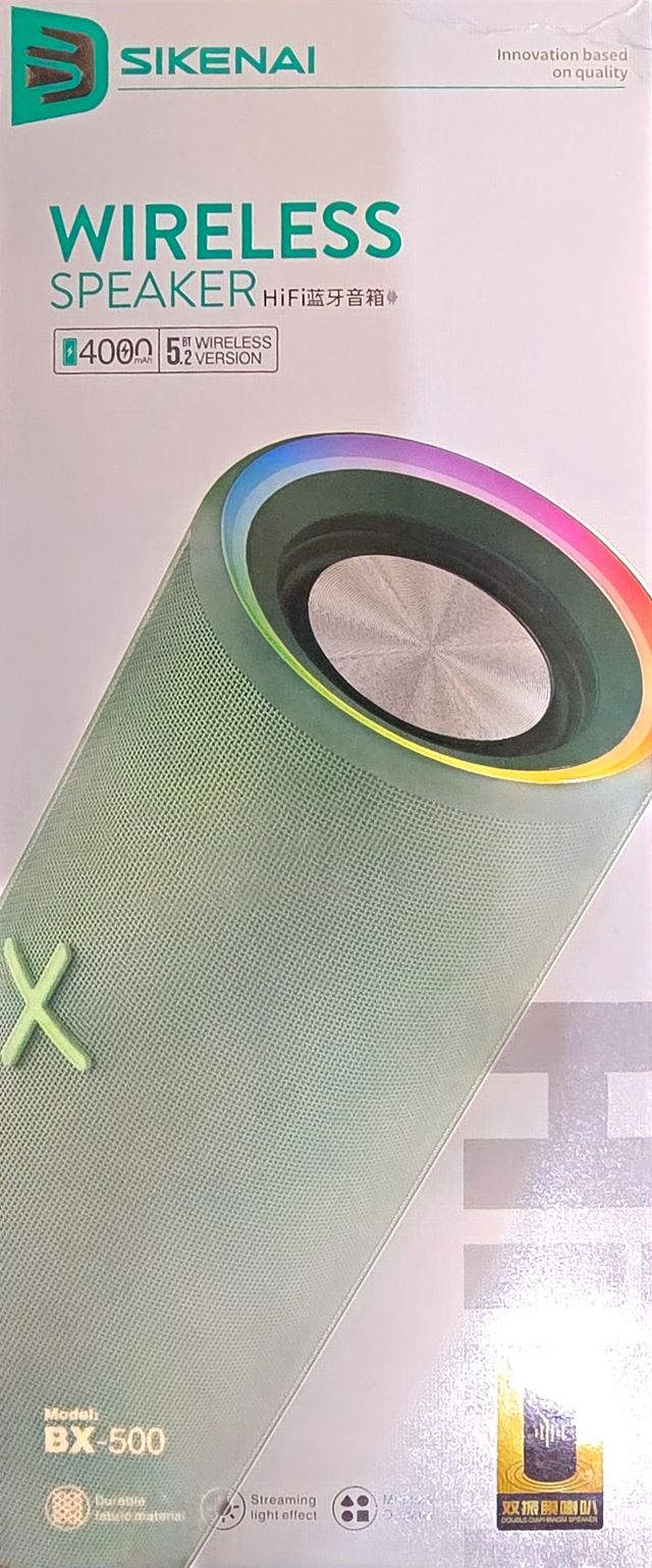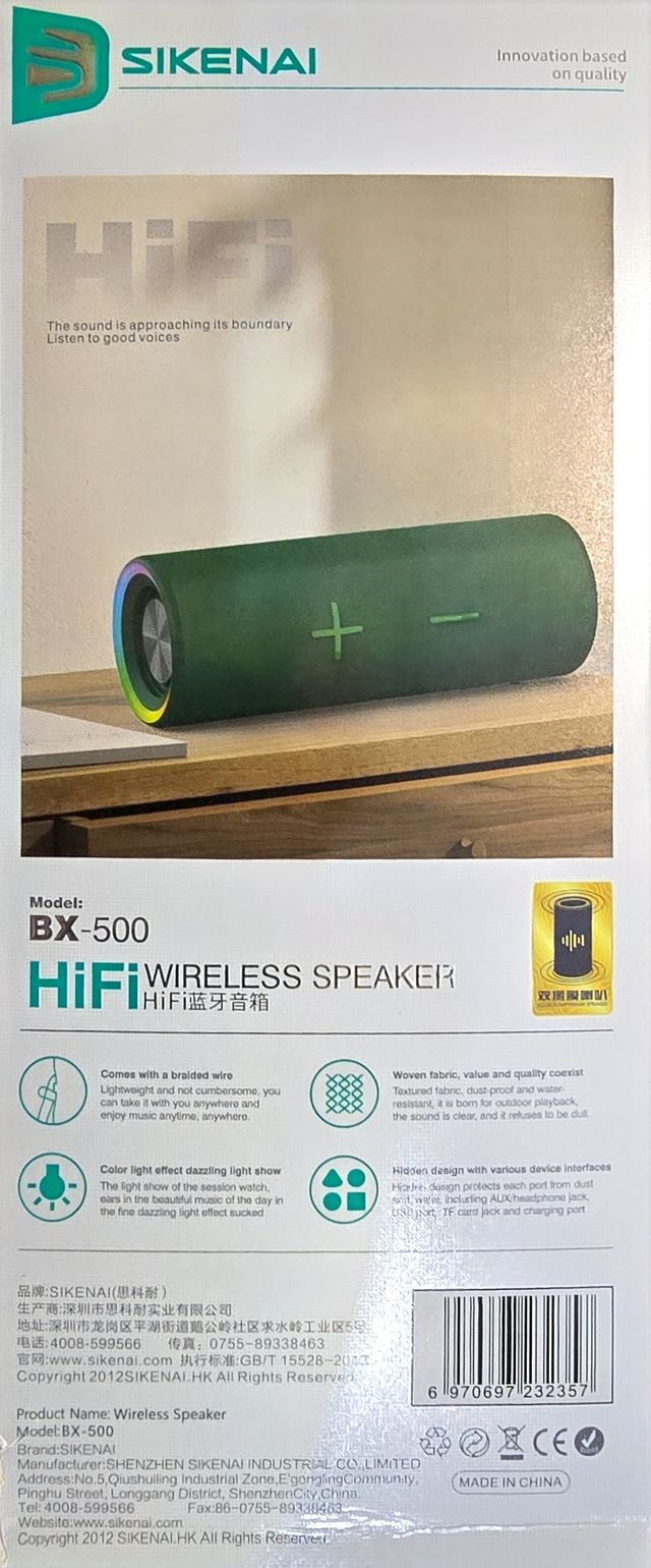 Voltaje de carga: 5 V CC. Tiempo de reproducción de música/conversación: aprox. 4-5 horas. Distancia efectiva del Bluetooth: >10 m. Colores: verde, negro, naranja. Peso neto: 780 g. Tamaño del producto: 81 x 81 x 220 mm.